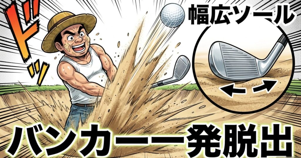 100切りを達成するには、バンカーを一発で出すことが絶対条件です。そのためには、テクニックに頼るのではなく「バンカー専用ウェッジ」の力を借りましょう。