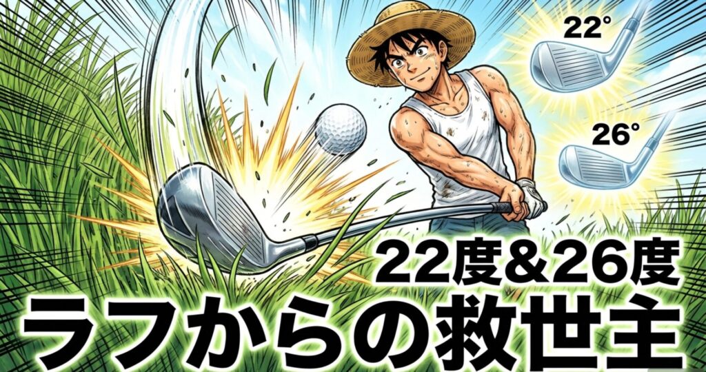 特にロフト角が「22度」と「26度」の2本は、100切りを目指すあなたの強い味方になります。まさに「ゴルフの神様がくれた救済策」ですな。