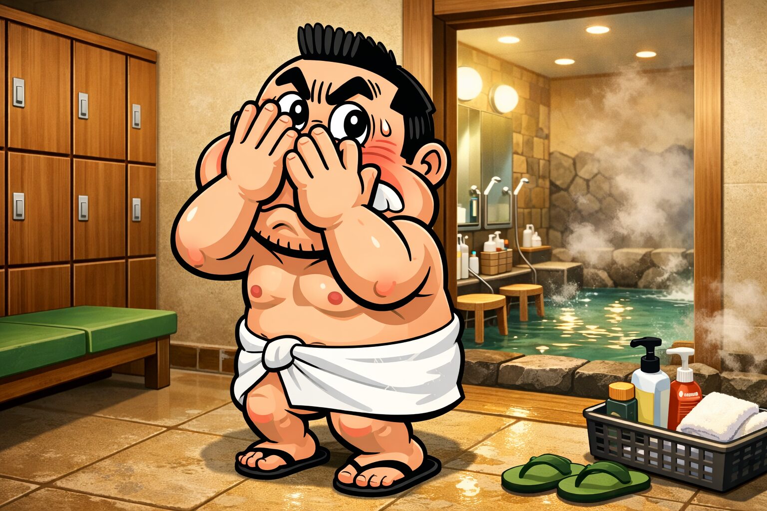 浴室の出口付近で、持っているタオルをしっかり絞り、体全体の水気を拭き取ってから脱衣所に上がるようにしてください。この一連の動作ができるだけで、「お、この人分かってるな」というベテランの風格が出ますよ。