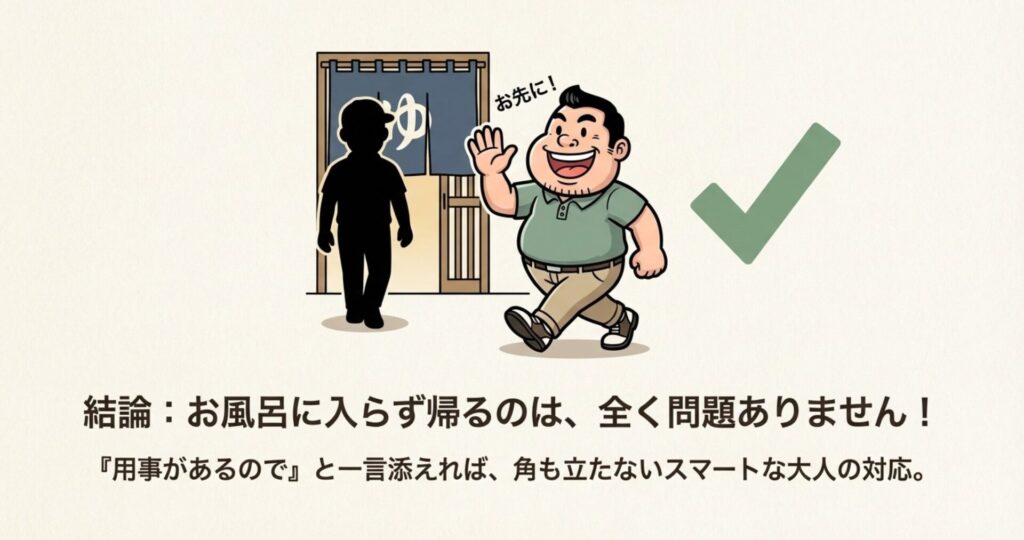 お風呂に入らず帰るのは、全く問題ありません!
