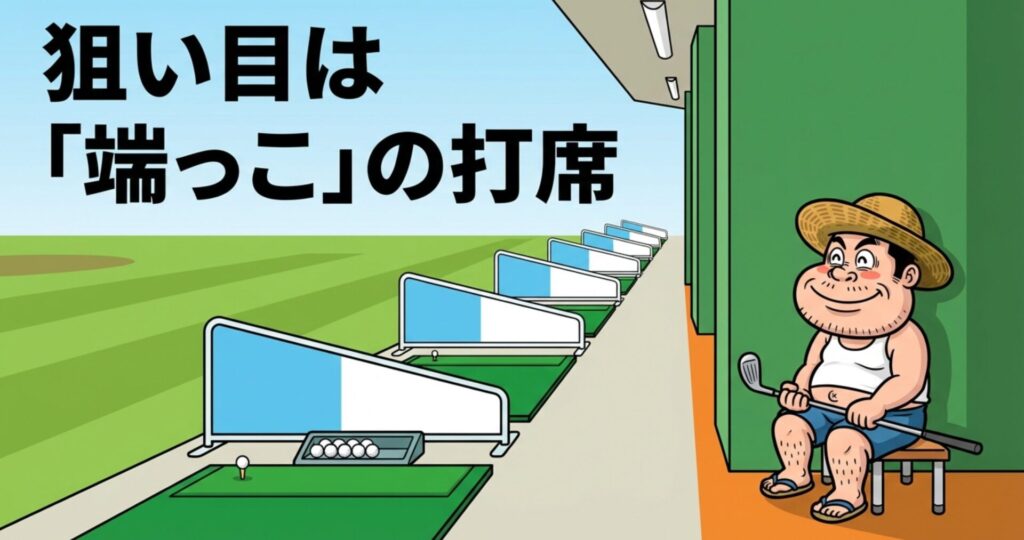 練習場の端っこは、片側が壁になっていたり通路の終点だったりすることが多く、隣の人の視線を半分シャットアウトできます。