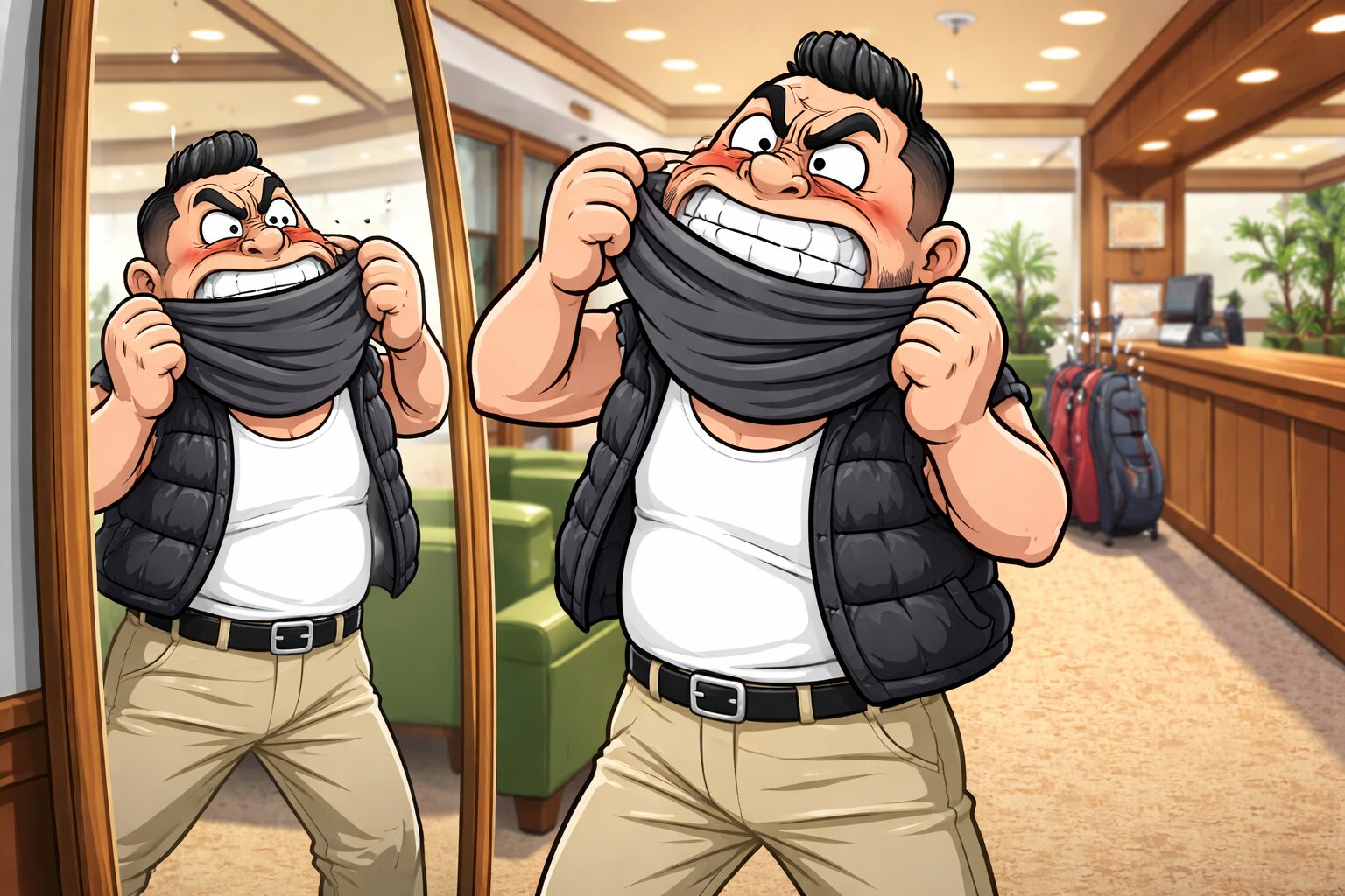 意外と忘れがちなのが、ロビーでの談笑時です。仲間と会ってテンションが上がり、ついついネックウォーマーを着けたまま話し込んでしまうことがありますが、周囲のメンバーさんやスタッフさんはしっかり見ていますよ。「あのおやじ、マナー知らんな」と思われないよう、挨拶の前にまず首元をスッキリさせましょう。