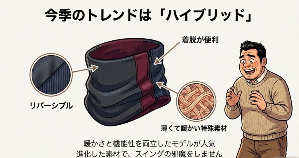 単に暖かいだけでなく、スイングのしやすさや、着脱の便利さを両立したモデルが人気を集めています。