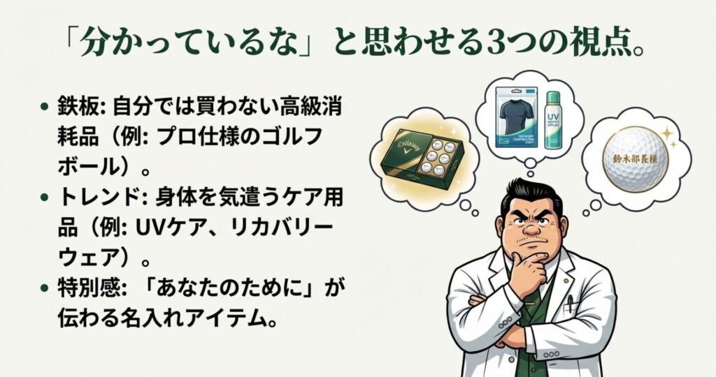 ゴルファーが本当に喜ぶもの、それは「自分では買わないけれど、あると嬉しい消耗品」です。