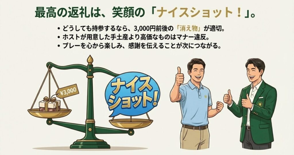 ただ、基本的にはホストが立てたプランに乗っかるのが一番の礼儀です。手ぶらで行って、プレーを心から楽しみ、しっかりお礼を伝える。これが、次のお誘いにつながる最強の接待マナーなんです。