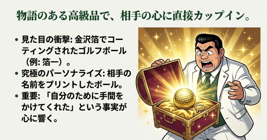 「かさばらない」というのは、相手への物理的な優しさそのものです。荷物が多いゴルフ帰り、最後に渡されるのが「軽くて価値のあるもの」だったら、相手は心からホッとするはずですよ。