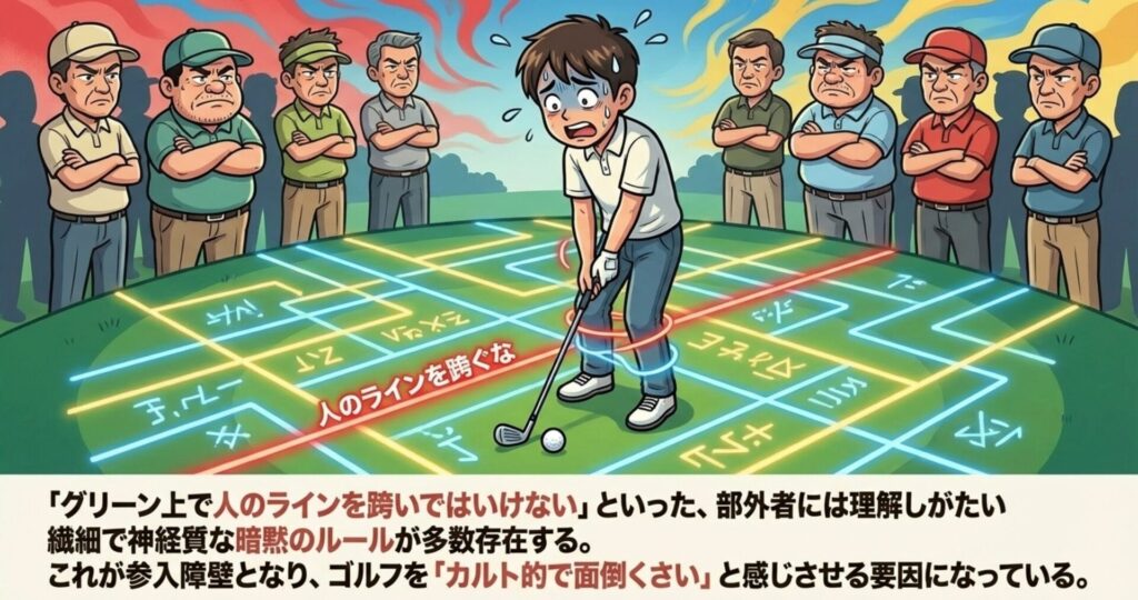 初心者を絶望させ、周囲を困惑させるのが、ゴルフの暗黙のルールです。