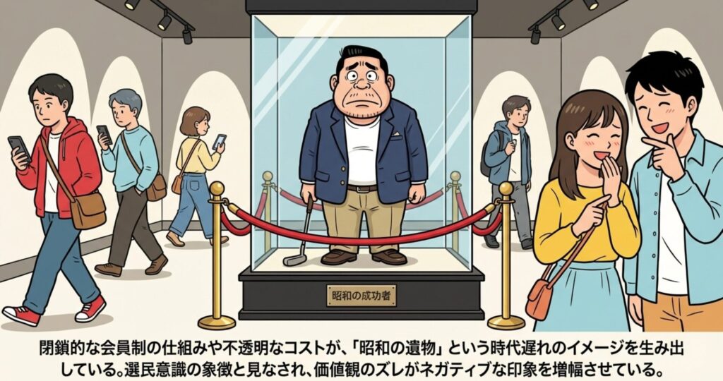 特に、ゴルフ場という閉ざされた空間で行われる「会員制」の仕組みが、非プレイヤーから見ると「選民意識」の象徴に見えてしまうんですわ。