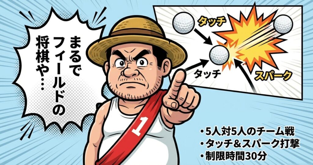 競技時間はきっちり30分。1人の最高得点は5点ですが、チームの勝利のために自己を犠牲にするプレーも求められます。