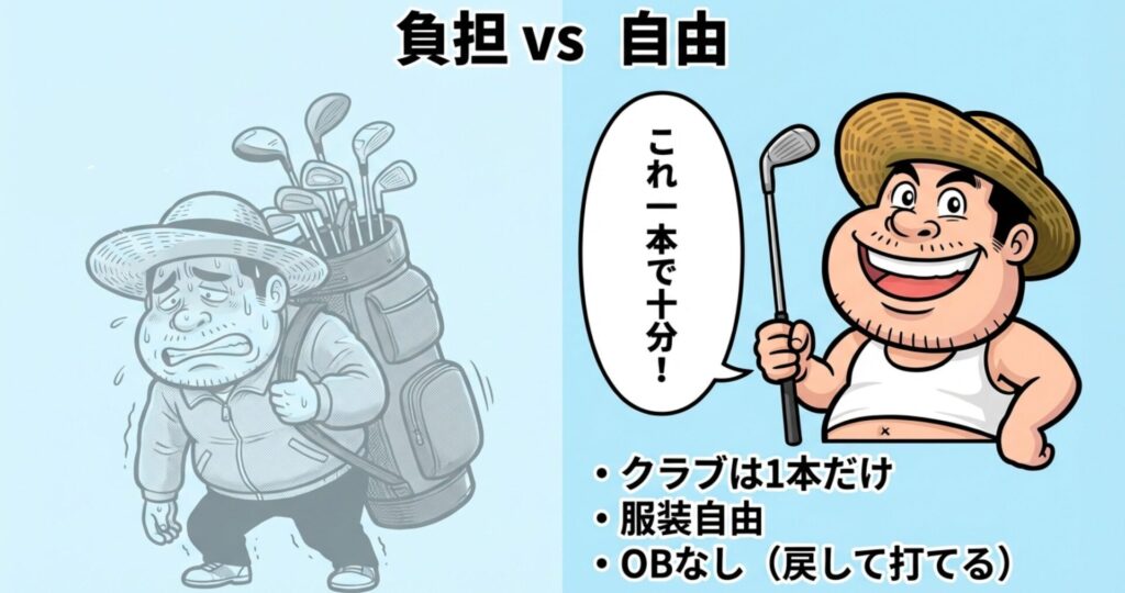 ただ、「ボールを打って目標に寄せる」という本質的な楽しさは共通しています。むしろ、OB(アウトオブバウンズ)の概念がない(コース外に出ても元の場所に戻して打てる)分、メンタル的にはグランドゴルフの方が健康にいいかもしれませんな(笑)