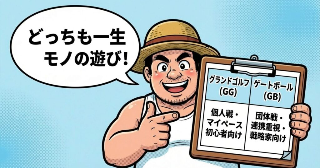 この記事を読めば、親戚の集まりで「おじいちゃん、グランドゴルフとゲートボールって何が違うの?」と聞かれても、まるでプロ解説者のような顔で答えられるようになります。
