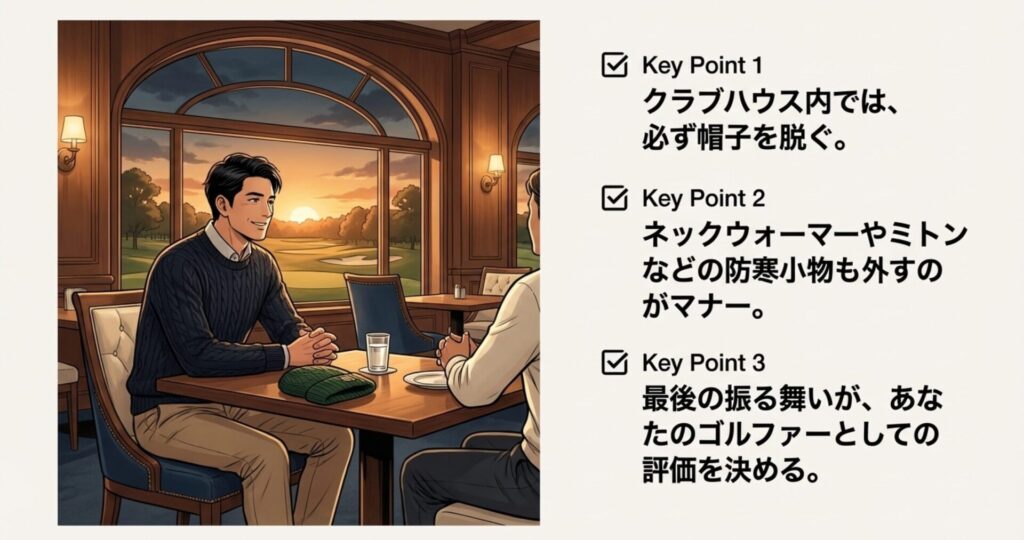 クラブハウス内での脱帽と小物の扱い