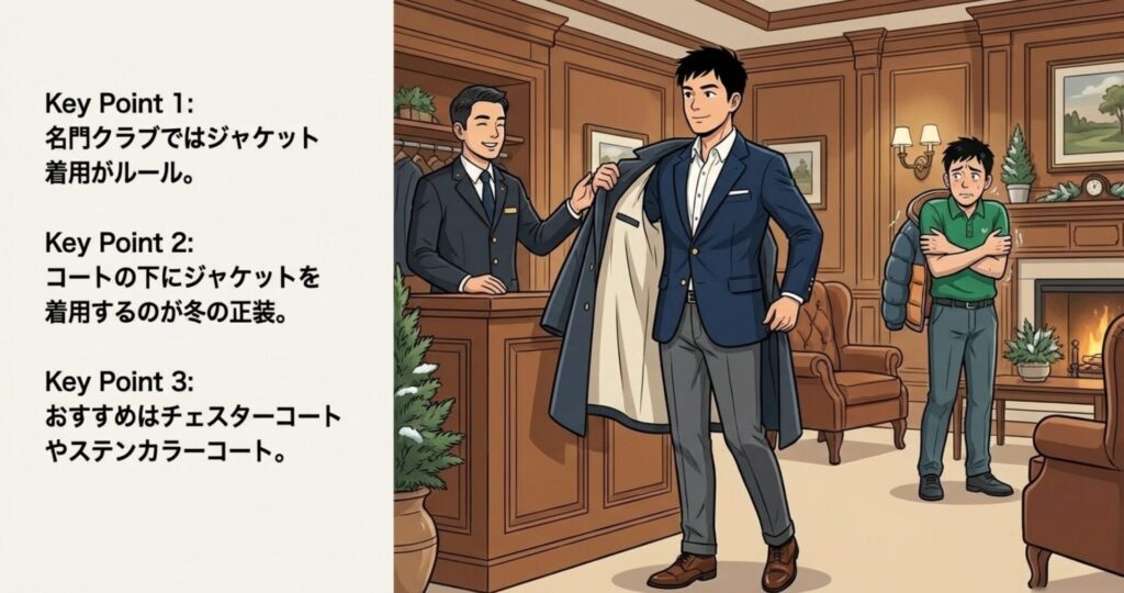 この記事を読めば、名門コースでも怖くない、最強の冬スタイルが手に入りますよ!